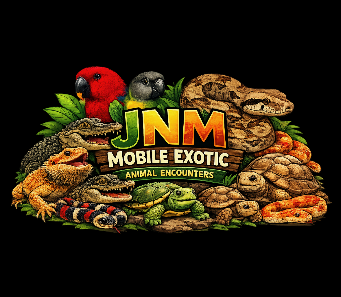 Our JNM Mobile Exotic Animal Encounters, we come to YOU with an unforgettable, hands-on experience featuring amazing exotic animals. From colorful parrots to fascinating reptiles, we turn any gathering into an exciting adventure
